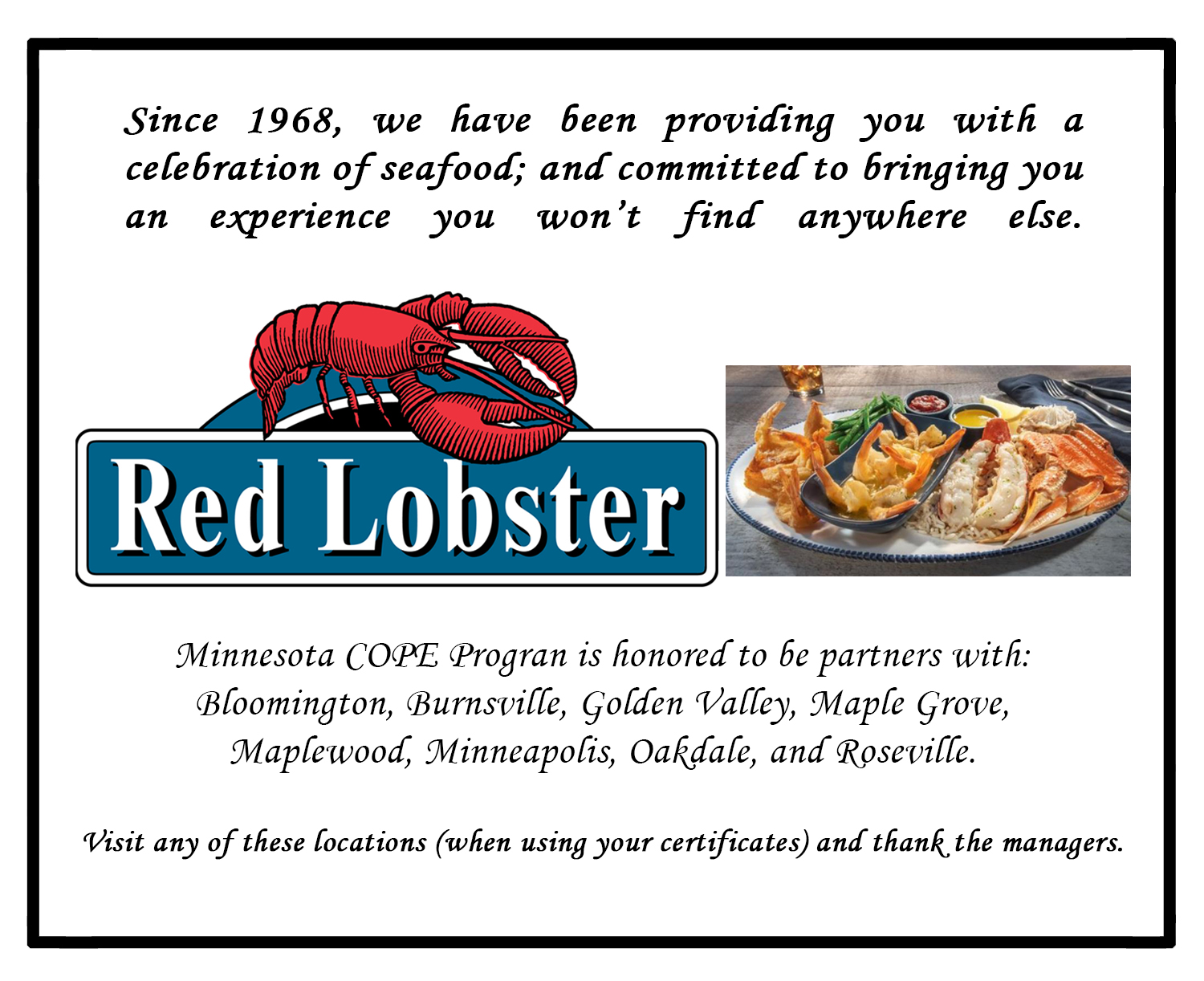 Red Lobster – Certificate/Gift Cards (Twin Cities Metro Area, Minnesota)